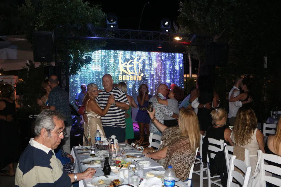 Kefi konukları, Greek gecelerinde Bodrum’da Sirtaki yapmanın keyfini doyasıya yaşıyor. Nostaljik Türkçe şarkılar ile Greek – Türkçe olarak yorumlanabilen şarkılar ise ortama ayrı bir keyif katıyor. Kefi sahne programları akşam saat 21.30’da başlayıp gece yarısına kadar devam ediyor.