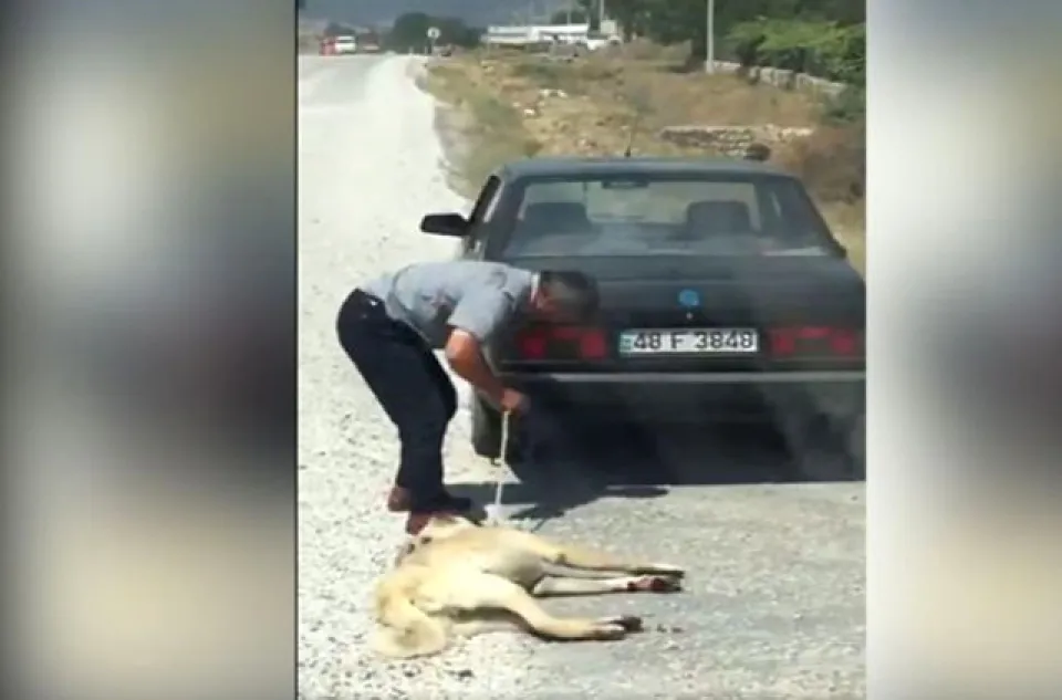 Antalya-Fethiye karayolunda bir vatandaş seyir halindeyken sürücüsünün kimliği tespit edilemeyen 48 F 3848 plakalı otomobilin arkasında sürüklenen köpeğin görüntüsünü cep telefonu kamerasıyla kaydederek sosyal medyada paylaşmıştı.
