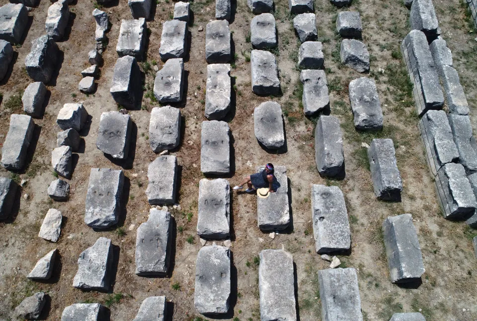 "Kentte su ve kaya tapınımı yapılmış. Kayaların kutsallığı da bölge için özgündür. Karya'ya sınır oluşturan bölgeye kadar ölülerini her zaman kayaların kalbine emanet ettiklerini görürsünüz. Alandaki 3 büyük tapınak merkezi oluşturuyor. Leto ve meşhur ikizleri Apollon ve Artemis için inşa edilmiş tapınaklar var. Milattan önce 8. yüzyıla giden somut arkeolojik kanıtlarımız var. Diğer kanıtlar bizi daha eskiye de götürebiliyor. Aynı zamanda Helenistik ve Roma dönemi izlerini taşıyan dini törenlerin yapıldığı tiyatro bulunuyor. Bu tiyatro da tamamen ana kayaya oyularak yapılmıştır."
