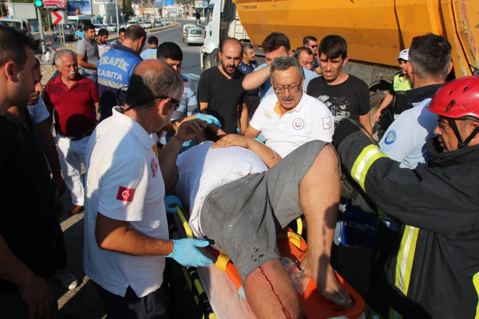 Nurettin Doğan'ın kullandığı 48 LN 666 plakalı kamyonet, Bodrum-Turgutreis karayolundaki trafik ışıklarında bekleyen tır ve minibüse çarptı.