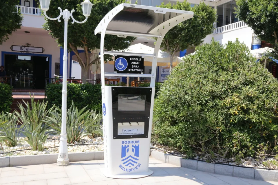 Bodrum Belediyesi bir sosyal sorumluluk projesini daha hayata geçirerek engelli vatandaşların akülü araçlarını şarj edebilecekleri şarj istasyonlarını hizmete sundu.