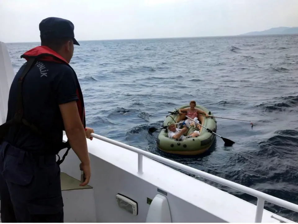 Sahil Güvenlik ekipleri, Ören Mahallesi sahilinden 1'i kadın iki kişinin yaklaşık iki metrelik lastik botla denize açıldığını ve geri dönemedikleri ihbarını alması üzerine harekete geçti.