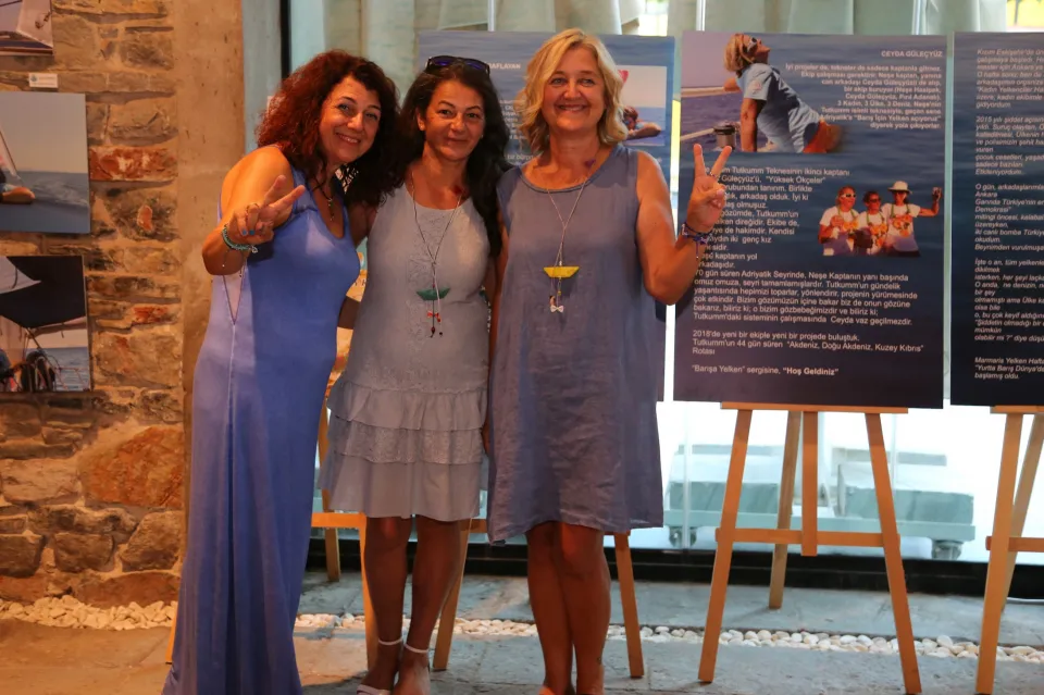 Dört kadın yelkencinin Doğu Akdeniz-Kıbrıs Barış Seyrindeki fotoğraflarından oluşan “Barışa Yelken” adlı fotoğraf sergisi, Trafo Bodrum Hakan Aykan Kültür ve Sanat Merkezi’nde ziyarete açıldı. Sergiden elde edilecek gelirlerin Bodrum Sağlık Vakfı’na bağışlanacağı belirtildi.