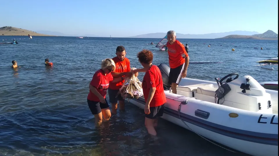 AKUT ekipleri, Çelebi Adası önlerinden botla aldıkları ölü caretta carettayı, Deniz Kaplumbağaları Araştırma, Kurtarma ve Rehabilitasyon Merkezine (DEKAMER) teslim etti.