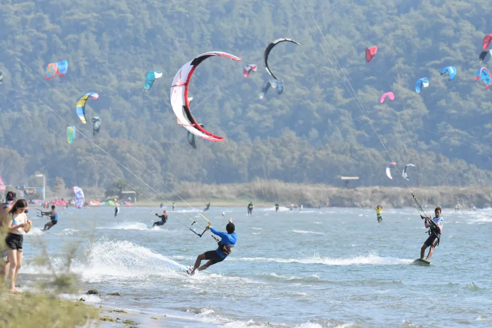 Bölgeye yürüme mesafesindeki Akçapınar sahilinde yarışan kiteboard sporcuları da adrenalin arayanların buluşma noktası. Onlarca kiteboard sporcusununun rüzgar şovu, izleyenleri heyecanlandırıyor.