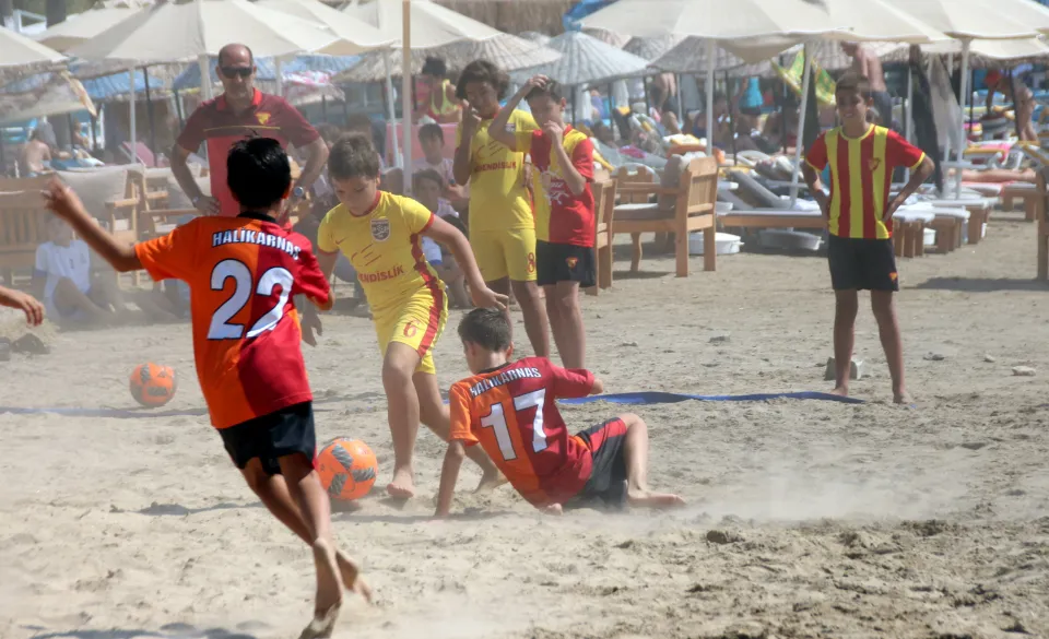 Türkiye Futbol Federasyonu ve Bodrum Belediyesinin desteğiyle Göztepe Spor Kulübü tarafından düzenlenen Plaj Futbolu Şenliği, Bitez Plajı'nda yapıldı.