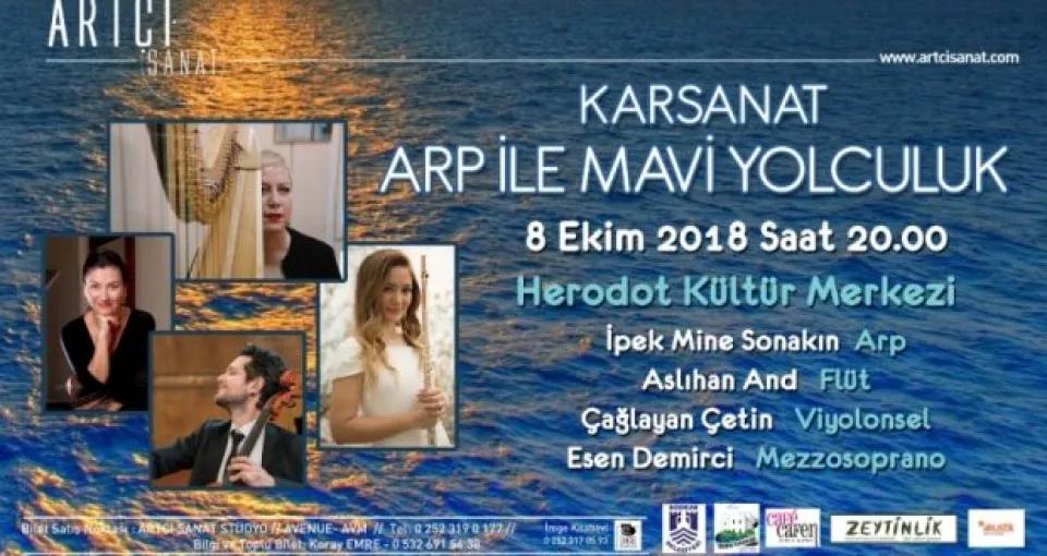 Karsanat’ın 8 Ekim 2018 Saat 20.00’de Herodot Kültür Merkezi’nde gerçekleşecek sezon açılış konserinde İpek Mine Sonakın (Arp), Aslıhan And (flüt), Çağlayan Çetin (viyolonsel) Esen Demirci (mezzosoprano) çok renkli programla bir araya geliyor.