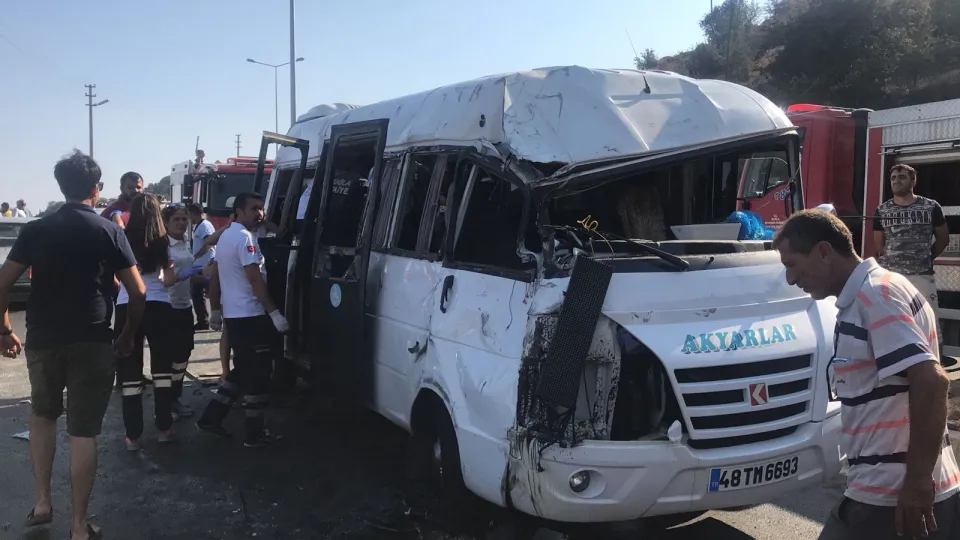 Bodrum ilçesinde, şehir içi yolcu minibüsünün devrilmesi sonucu 1'i ağır 16 kişi yaralandı.