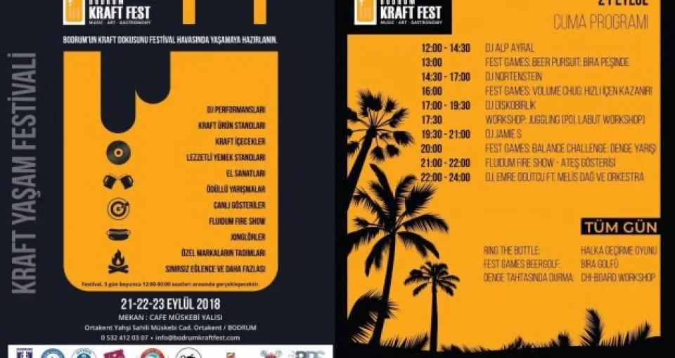 Bodrum’un Kraft dokusunu festival havasında yaşamaya hazırlanın sloganıyla yola çıkan; Bodrum’un ilk “müzik”, “sanat” ve “gastronomi” temalarının bir arada işlendiği festivali olma özelliğini taşıyan “Bodrum Kraft Fest” başlıyor.