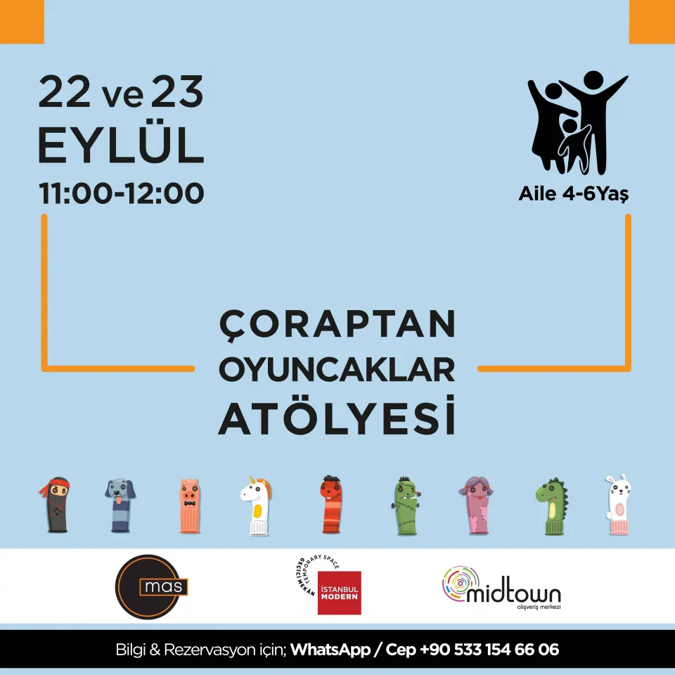 İstanbul Modern Sanat Müzesi tarafından gerçekleştirilen sanat atölyeleri 22 Eylül Cumartesi - 23 Eylül Pazar günü 2 farklı atölye ile MAS Akademi’de aile ve çocuklarla buluşuyor.