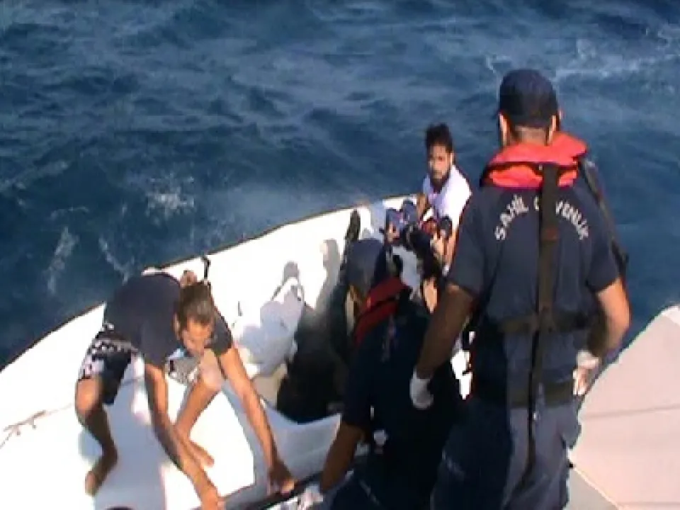 Bu arada, düzensiz göçmenlerin kurtarılma anı görüntülendi. Görüntülerde denizden sahil güvenlik botuna alınan bazı göçmenlerin baygın vaziyette olduğu dikkati çekti. Kayıtlarda limana getirilen çocukların sağlık personeli tarafından sedyeye alınarak müdahale edildiği görülüyor.