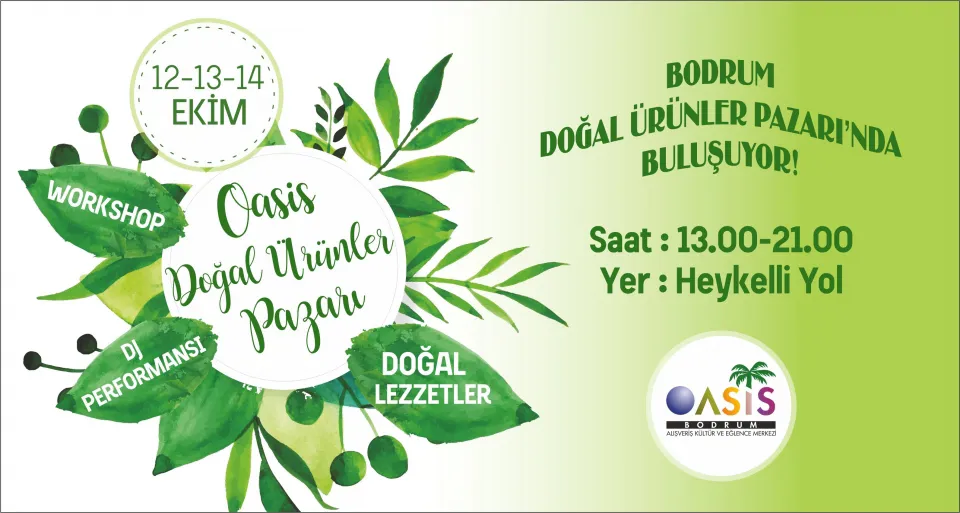 Oasis’te, 12-13-14 Ekim tarihleri arasında gerçekleşecek doğal ve organik ürünlerin sergileneceği pazar 3 gün boyunca Bodrumluları doğal lezzetlerle buluşturacak!