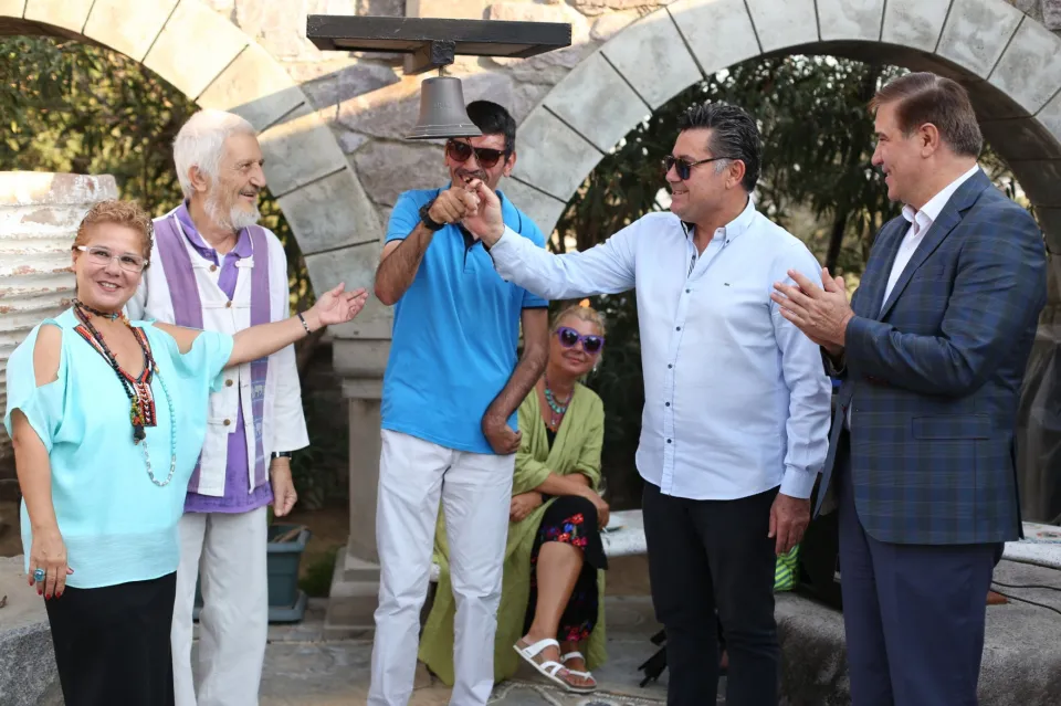 El sanatları eğitmeni Hilal Karakaş ise Sevgi Sanat Atölyesi olarak Bodrum genelinde yapılan tüm festivallere katılmaya çalıştıklarını belirterek "Bu mekanı verip bize bu olanağı sundukları için Tezer ailesine çok teşekkür ediyorum. Bugün geleneksel 4. sergimizin açılışını yapacağız. Her sene değişik konseptlerle girmeye çalışıyoruz sergimize. Bu seneki konseptimiz dekoratif el sanatları. Bodrum sanatçılar ilçesi, bir sürü sanatçı barındırıyor içinde. Herkes bir ürünü bir günde iki günde ya da bir haftada çıkarabiliyor. Ama inanın bizim atölyemiz bu ürünleri çıkartabilmek için haftalarca ve aylarca çalışıyor. Onun için biraz sonra gezeceğiniz sergimizi o gözle bakarak gezmenizi istiyorum ve öğrencilerime büyük bir alkış rica ediyorum. Çok büyük emekler üretiyorlar. Ama sizlerin sevgisi sizlerin ilgisi onlara her geçen gün daha büyük şevk veriyor. Bu da bizi hepimizi mutlu ediyor. İyi ki varsınız iyi ki geldiniz. Hepinize çok teşekkür ediyorum." dedi. Yapılan konuşmalardan sonra sergi, geleneksel hale gelen çan çalınmasıyla açıldı. Açılışa katılanlar 22 Ekim'e kadar açık kalacak olan sergiyi gezerek Yakaköy Sevgi Sanat Atölyesi öğrencilerinin ürettiği hediyelik eşyalar hakkında bilgiler aldı.
