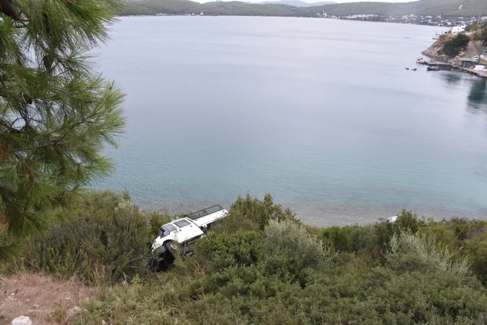 Milas-Bodrum karayolunda seyreden Ahmet İçöz yönetimindeki 48 BY 288 plakalı kamyonet, Güvercinlik mevkisinde, yoldan çıkarak önce çam ağacına çarptı ardından da yaklaşık sonu denize ulaşan yaklaşık 30 metrelik şarampole devrildi.