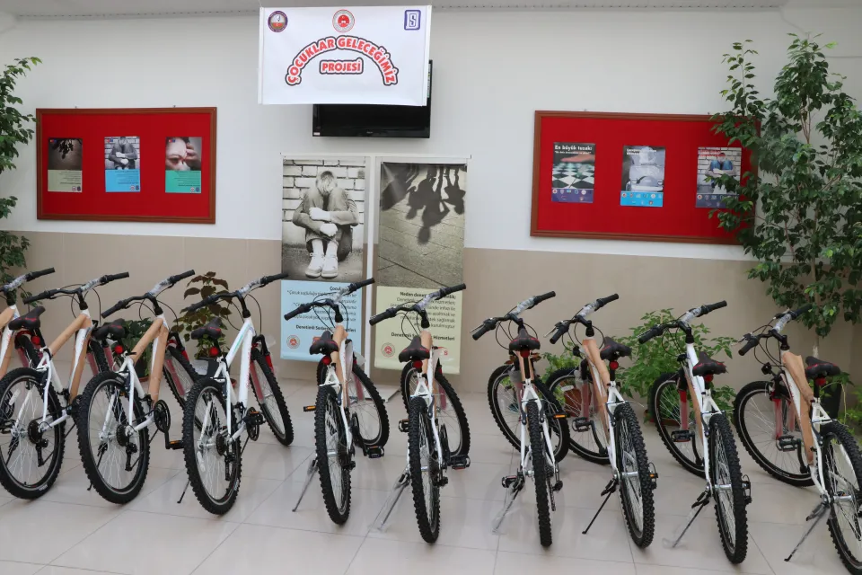Fethiye ilçesinde "Çocuklar Geleceğimiz" projesi kapsamında 12 hükümlü çocuğa bisiklet hediye edildi.
