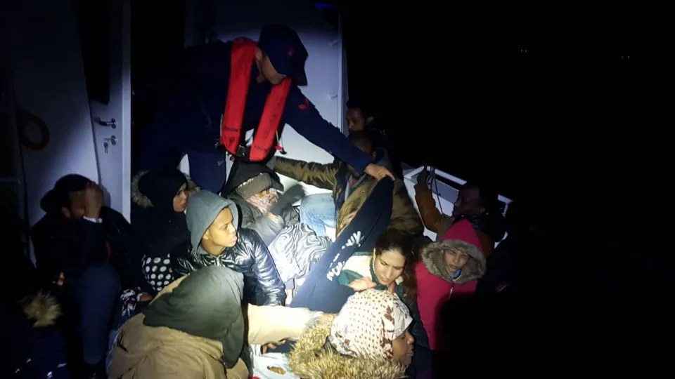 Teknedeki Cezayir, Filistin ve Somali uyruklu 20 düzensiz göçmen, sahil güvenlik botuyla Bodrum Limanı'na getirildi.