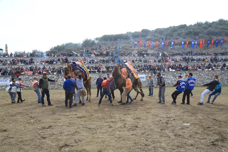 Milas ilçesinde, sezonun ilk deve güreşi festivali düzenlendi.