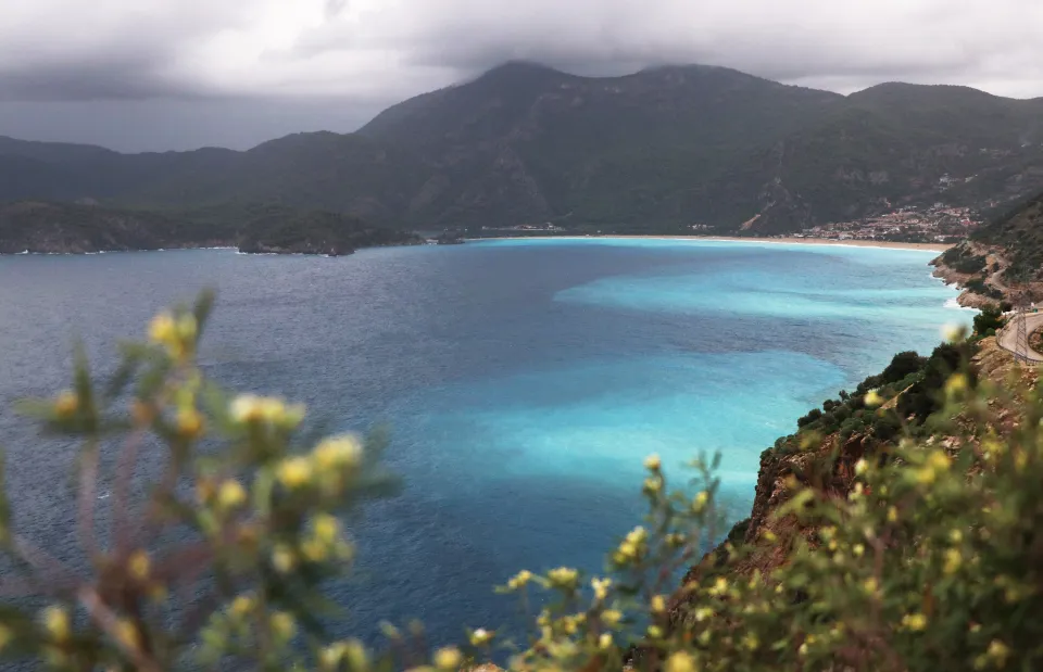 Fethiye ilçesinde etkili olan yağışın ardından Ölüdeniz ve Kelebekler Vadisi Plajı'nın rengi turkuaza dönüştü.