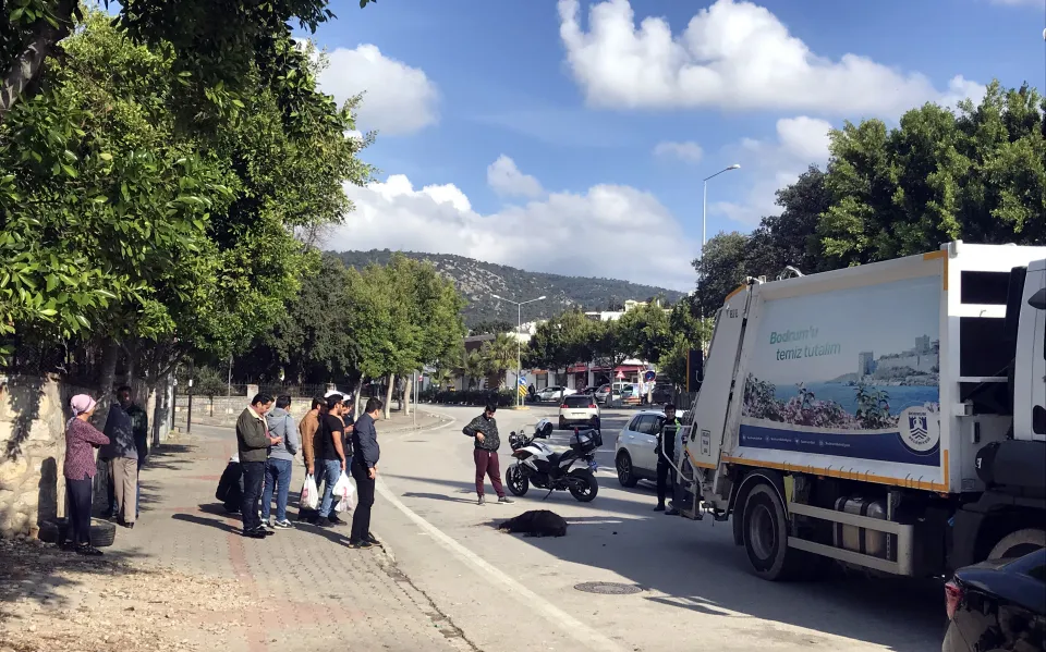 Yaralı domuz, bölgeye gelen Bodrum Belediyesinin hayvan nakil aracıyla, meraklı vatandaşın bakışları arasında hayvan barınağına götürüldü.