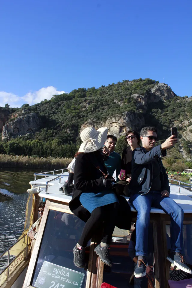 Ortaca ilçesi Dalyan Mahallesi'ni ziyaret eden yabancı gazeteciler, Dalyan Kanalı'nda tekne turuna katıldı. Kaya mezarlarını, İztuzu Plajı'nı ve Köyceğiz Gölü'nü gezen ekip, balık tutup mavi yengeçten tattı.