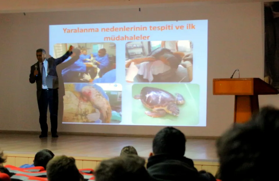 Okulun Denizcilik Kulübü öğrencileri tarafından hazırlanan iki aşamalı projenin ilk ayağında, Deniz Kaplumbağaları Araştırma Kurtarma ve Rehabilitasyon Merkezi (DEKAMER) Müdürü Prof. Dr. Yakup Kaska tarafından öğrencilere yönelik deniz kaplumbağaları hakkında eğitim semineri düzenlendi.