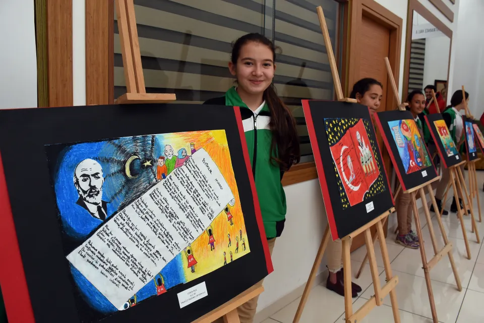 Milli şair Ersoy'un "Bülbül" isimli şiirinin okunduğu ve öğrencilerin proje konusuyla ilgili yaptığı resimlerin sergilendiği program, panelle devam etti.