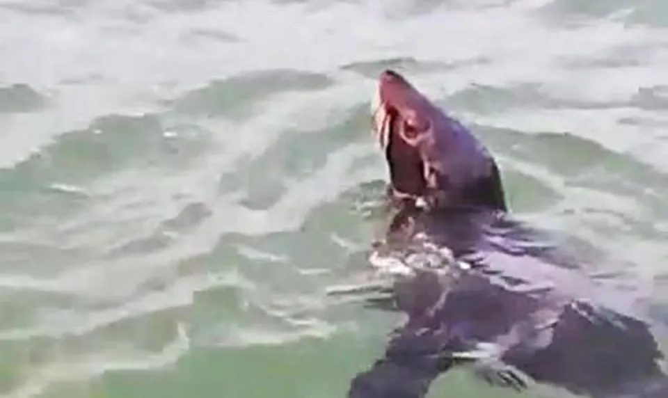 Bodrum ilçesindeki yunus gösteri merkezinden "kaçan" Çiko isimli kürklü fok, cep telefonu kamerasına yansıdı.