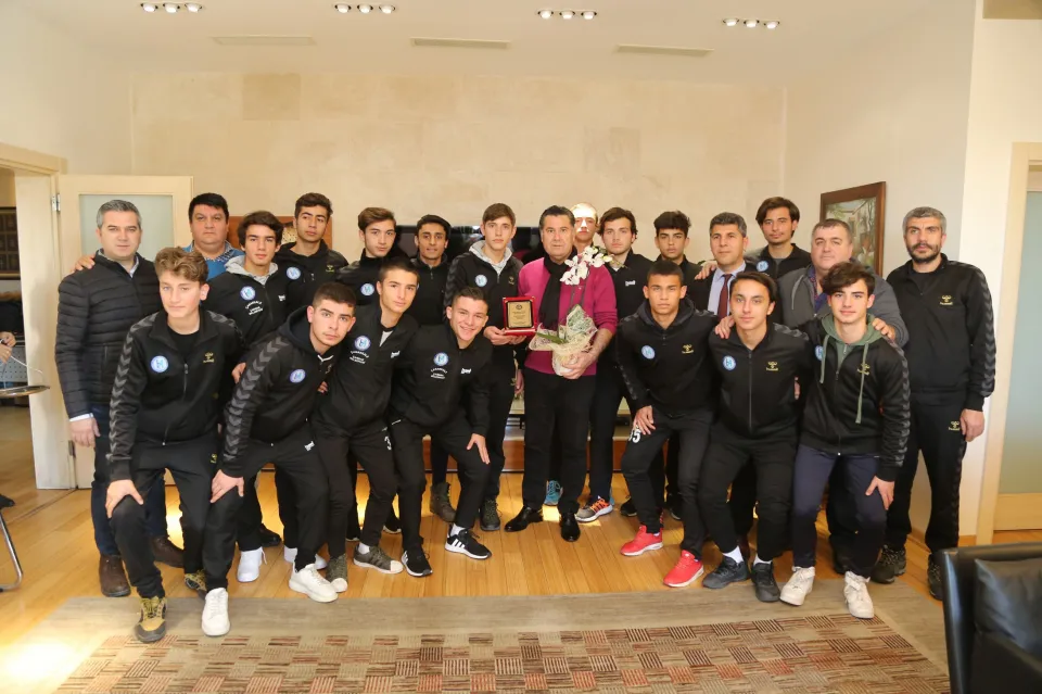 Halil İbrahim İper Adnan İper Anadolu Lisesi Futbol Takımı, Bodrum Belediye Başkanı Mehmet Kocadon’u makamında ziyaret etti. Ziyarete Okul Müdürü Hasan Örenç, Okul Aile Birliği Başkanı Hüseyin Demir, Beden Eğitimi Öğretmeni Serkan Bahadır ve okul futbol takımı öğrencileri katıldı.