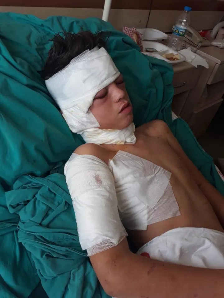 Mahallede sesleri duyan vatandaşların yardımıyla kurtarılan çocuk, vücudunun çeşitli yerlerinden yaralandı.