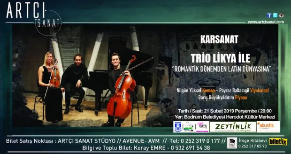 Karsanat Sanat Kurulu üyelerinden, İstanbul Üniversitesi Devlet Konservatuarı Viyola Bölümü emekli öğretim üyelerinden Çiğdem Epikmen’in sanat danışmanlığında gerçekleşecek olan bu konserde, üyelerinin her biri solist ve orkestra üyesi olarak kendini kanıtlamış, Türkiye’de ve yurtdışında ülkemizi başarıyla temsil etmekte olan Trio Likya müzisyenleri Bodrumlu sanatseverlerle buluşuyor.