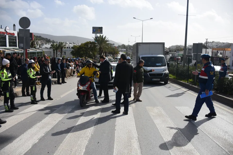 Bodrum Emniyet Müdürlüğü ise 100 personelle 20 ayrı noktada, İlçe Jandarma Komutanlığı 61 trafik ekibiyle, Bölge Trafik Denetleme İstasyon Amirliği de 7 ekipte 15 personelle okul ve yaya geçitlerinde uygulama gerçekleştirdi.