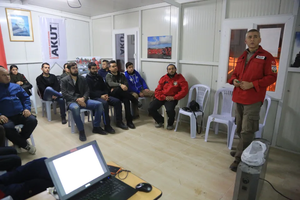 AKUT Milas gönüllülerine eğitim veren AKUT Bodrum Ekip Lideri Sadettin Uslu, kurtarma operasyonlarında hayati önem taşıyan ekip ruhunun oluşabilmesi için gönüllülerin dikkat etmesi gereken konularda bilgi verdi. Her hafta çarşamba günü farklı konu başlıklarında sürdürülen eğitimlere katılan AKUT Milas gönüllüleri, ekip ruhu ve çalışmasında dikkat edilecek hususlarda bilgilendirildi.