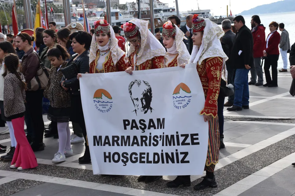 Atatürk'ün ilçeyi ziyarette kullandığı Ege Vapuru'nu temsilen bir yelkenli, denizden geçiş yaptı. Tören kapsamında Marmaris Aksaz Deniz Üs Komutanlığı Bandosu, Atatürk'ün sevdiği ve onun için yazılmış marşlardan konser verdi. Alandakiler, askeri bandoya alkışlarla eşlik etti.