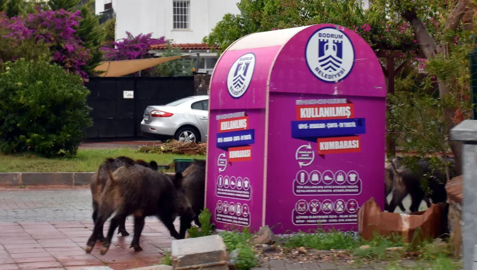 Bodrum ilçesinde, aç kalan yaban domuzu sürüsü ilçe merkezine indi. Konacık ve Torba mahallelerinde görülen yaban domuzları, sabahın erken saatinde evlerin bulunduğu alanda ve çöp kenarlarında yiyecek aradı.