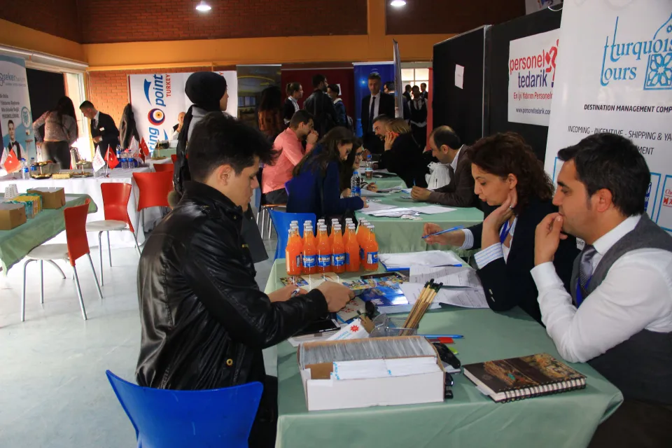 MSKÜ Mavi Çatı Öğrenci Sarayı'ndaki etkinlikte, turizm bölgelerinde faaliyet gösteren otel, tur şirketi ve sektör temsilcileri stant açtı. Stantlarda tanıtımlarını yapan firmalar, turizm sezonunda istihdam etmek üzere öğrencilerle ikili görüşmeler gerçekleştirdi.