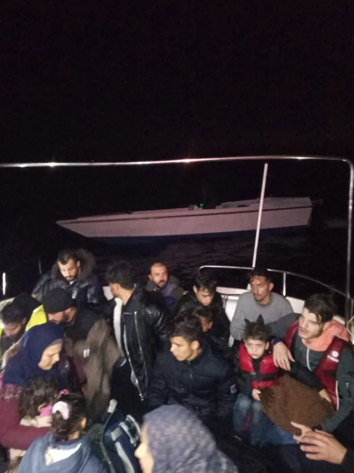 İki Sahil Güvenlik botu tarafından durdurulan teknede, yasa dışı yollardan yurt dışına geçmeye çalışan, aralarında çocuk ve kadınların da bulunduğu Filistinli 25 düzensiz göçmen yakalandı.