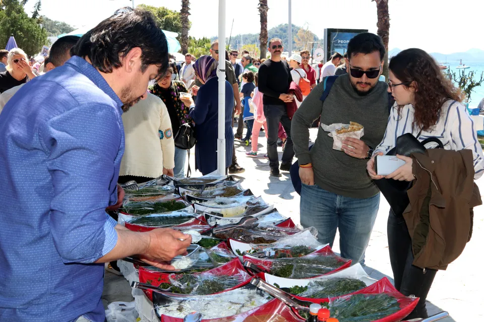 Fethiye ilçesinde "3. Göcek Ot Yemekleri Festivali"nde yöresel ürünler ve otlarla hazırlanmış yemekler satışa sunuldu.