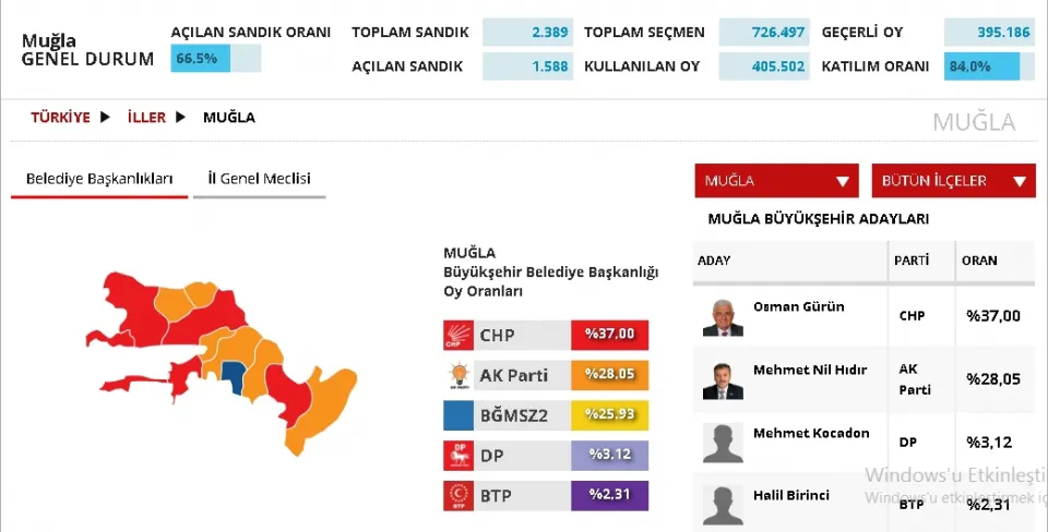 MUĞLA GENEL DURUM: AÇILAN SANDIK %66,5