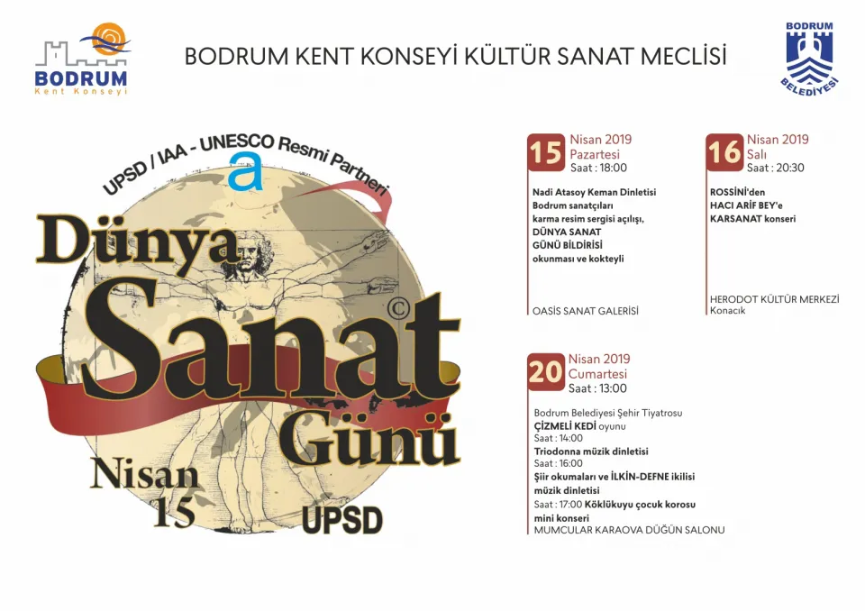 Bodrum Kent Konseyi Kültür Sanat Meclisi, 2015 yılından bu yana Dünya Sanat Günü’nü yarımadanın çeşitli bölgelerinde, sanatın bir çok disiplinini içeren etkinliklerle kutluyor.