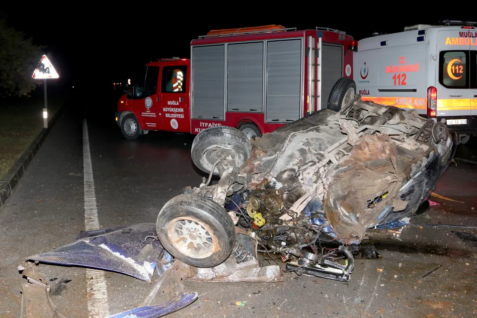 Fethiye ilçesinde refüje çarparak hurdaya dönen otomobildeki 2 kişi kazadan yaralı kurtuldu.