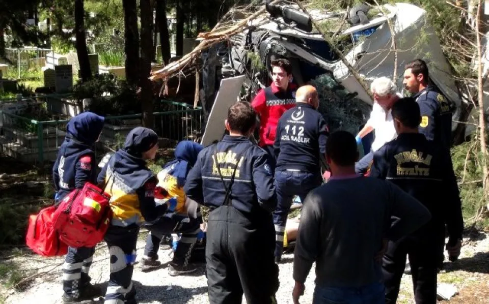 Otomobile çarpan beton mikseri, karayolundan şehir yeni mezarlığı duvarını yıktıktan sonra mezarlık içinde ağaçlara çarparak durabildi. Kaza sonrası 48 KZ 235 plakalı aracın sürücüsü Hüsnü Demirtaş araç içinde yaşamını yitirirken, beton mikser sürücüsü Ferit Dalgıç ve mezarlığa su doldurmak için gelen Döndü Bulut isimli kadın da beton mikserinin devirdiği ağaç altında kalarak yaralandı.