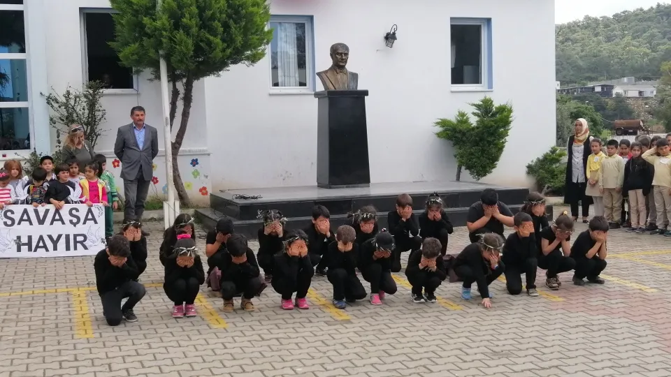 Gündoğan Nafiz Ilıcak İlkokulu öğrencileri, savaşa karşı başlatılan "Savaşa karşı bir milyon zeytin dalı" projesi kapsamında etkinlik düzenledi.