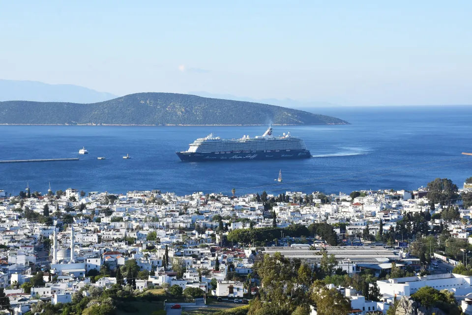 Kruvaziyer turizminin önemli merkezlerinden Bodrum ilçesine "Mein Schiff 4" isimli kruvaziyer, 2 bin 636 turistle sezonun ilk seferini gerçekleştirdi.