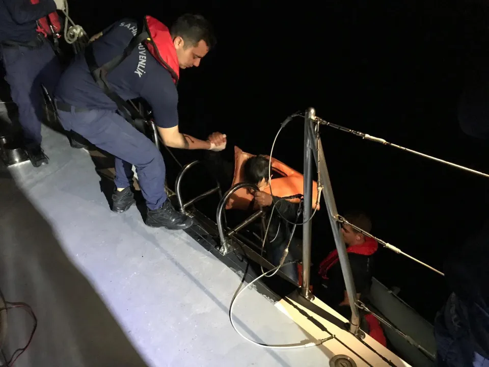 Yasa dışı yollardan yurt dışına çıkmaya çalıştıkları sırada jet-skiden düştükleri anlaşılan ikisi Suriyeli, biri Filistinli düzensiz göçmenler, sahil güvenlik botuna alınarak Turgutreis Limanı'na getirildi.