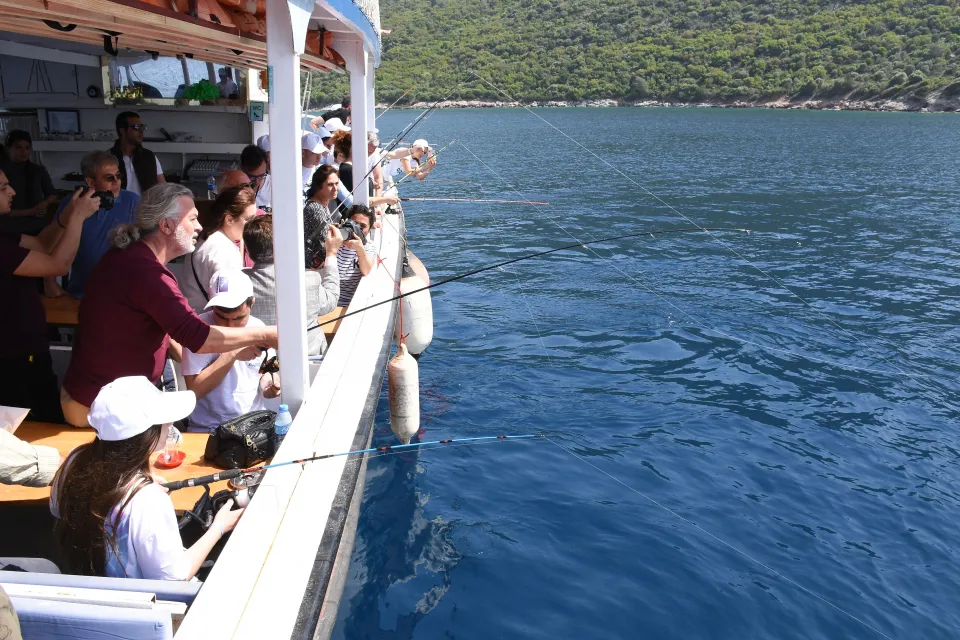 Tekneyle açılarak Karaada önlerine giden grup, ailelerinin ve dernek üyelerinin yardımıyla denize oltalarını atarak balık avladı.
