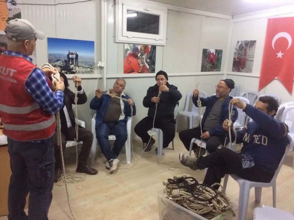 Teknik malzeme eğitimleri kapsamında kullanılan ipleri tanıtan ve iplerin özelliklerini anlatan Uslu, deneyimlerinden kesitler sunarak operasyonlarda kullanılan iplerin korunması ve bakımıyla ilgilide açıklamalarda bulundu. Eğitimde daha sonra düğüm çeşitlerine geçildi. AKUT gönüllüleri; eğitim kapsamında sekizli, tam ve yarım kazık, balıkçı düğümü, izbarço düğümü, camadan düğümlerini teorik olarak gördü. Teori eğitimi sonrasında da bazı düğümler gönüllüler tarafından uygulandı. Geniş kapsamlı bir konu olan ip teknikleri eğitimlerinin ilerleyen haftalarda da devam edeceği bildirildi. (İHA)