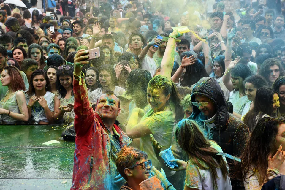 Etkinlikte katılımcılar, farklı renklerdeki toz boyaları birbirlerine atarak, müzik eşliğinde dans etti. Boyaların havaya saçıldığı anda renkli görüntüler oluştu.