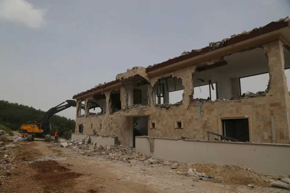 Kaçak ve izinsiz olduğu tespit edilen yapı ile ilgili olarak yürütmeyi durdurma talebini inceleyen Muğla 2'inci İdare Mahkemesi 30.04.2019 tarihinde yürütmenin durdurulması istemine ret cevabı vermişti. Hukuki sürecin tamamlanmasının ardından Bodrum Belediyesi ekipleri gerekli tebligatları bina sahibine yaparak bu sabah yıkım işlemine başladı. Karayolları ekiplerinin yol güvenliğini aldığı yıkım sırasında jandarma ekipleri de hazır bulundu.