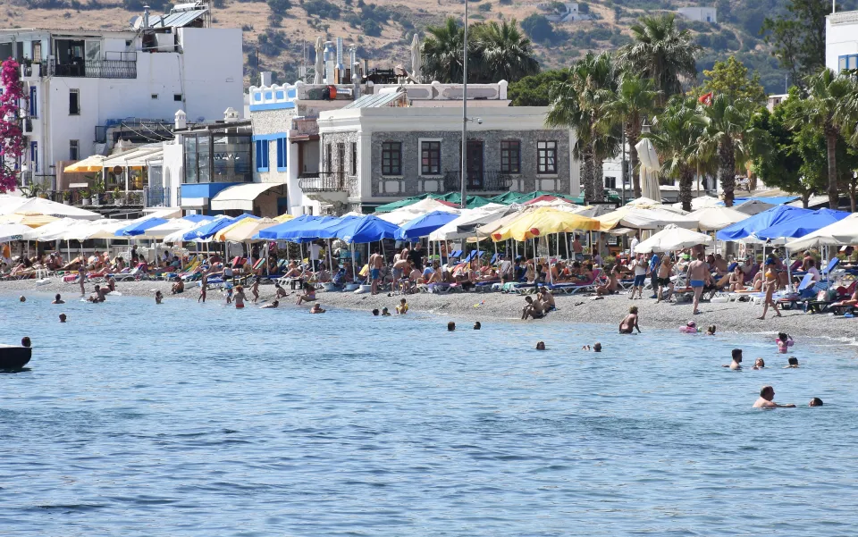 Hava sıcaklığının 36, deniz suyu sıcaklığının 21 derece kaydedildiği Bodrum'da, yerli ve yabancı turistler, Kumbahçe, Paşatarlası, İçmeler, Gümbet, Bitez ve Ortakent plajlarında yoğunluk oluşturdu.