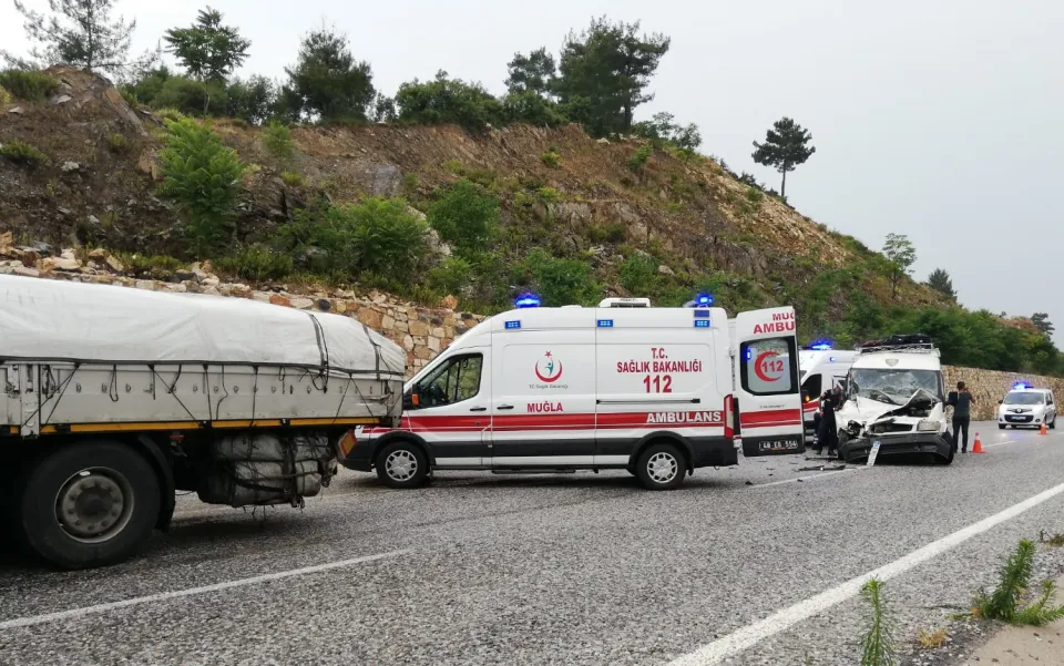 Yatağan ilçesinde, minibüs ile tırın çarpışması sonucu 14 kişi yaralandı.